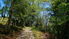 Lorsque Stefano me propose de monter par la piste forestière que nous empruntons parfois (voire souvent) pour descendre – celle du parcours de la montée de La Barillette en VTT – j’approuve en battant des mains. Car cela signifie au moins deux choses : nous éviterons ainsi ce petit bout de sentier assassin et nous pourrons marcher côte à côte en bavardant, profitant encore plus de la balade.