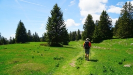 Arrivés à la croisée des sentiers, celle où tous les chemins mènent à La Dôle, nous optons pour la sente qui nous mènera au Col de Porte par le Chalet des Apprentis.