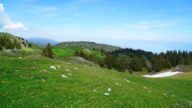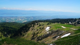Nous nous installons sur l’herbe, profitant de la douce chaleur, de la petite brise fraîche et de la superbe vue sur la chaînes des Alpes.