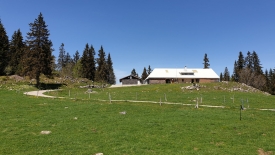 Nous arrivons derrière le chalet Le Cerney. C’est de ce chalet que provient le fromage que nous achetons au Couchant.