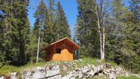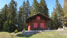 Les abords du chalet sont dégagés car la végétation luxuriante qui envahit habituellement ses alentours n’a pas encore poussée.