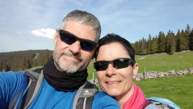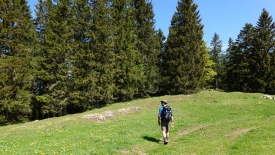 Stefano m’offre la possibilité de suivre la route qui descend puis remonte au chalet à Roch Dessus ou de suivre les crêtes et de passer par la Vue de Genève. Je choisis la seconde option, d’une part parce que c’est plus bucolique mais également parce que, de mémoire de hiker, c’est la première fois que nous faisons ce trajet dans ce sens.