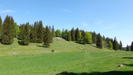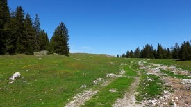 Nous suivons une petite combe, entre les Bois des Petits Plats et, et… je vous le donne en mille, le pâturage des Petits Plats.