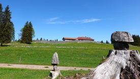 Nous laissons la voiture le long de la route du Marchairuz, quelques virages au dessus du village Le Brassus. Nous avons dû dépasser plus d’une centaine de cyclistes sur la route. Les sportifs du dimanche (plutôt, du samedi) sont lâchés !
