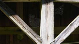 Nous nous rendons compte que son toit, recouvert à l’origine de tavillons, a été recouvert de tôle. En regardant bien la photo ci-dessous, on voit les clous dépasser.
