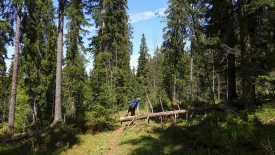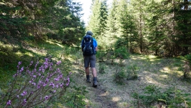 Heureux de pouvoir ajouter un refuge à notre liste, nous restons sur le sentier qui risque bien de disparaître d’ici quelques années du fait de l’invasion de sapelets (=petits sapins).