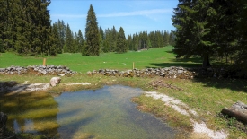 De là, il ne nous reste plus qu’à rejoindre la route par laquelle nous avons commencé notre balade tout à l’heure. Alors que nous nous apprêtons à traverser la route du Marchairuz pour retrouver la voiture, deux motos et une Lotus passent à grande vitesse, pétaradant à qui mieux mieux en se tirant la bourre.