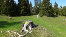 Lorsque nous sortons de la forêt, ou plutôt des bois, nous sommes en bordure du pâturage des Grands Plats de Vents.