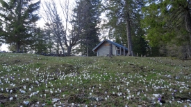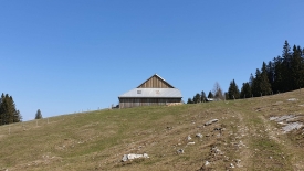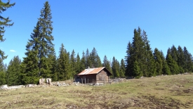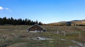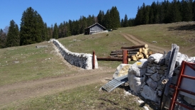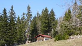 Sur la route forestière qui monte aux Petites Chaumilles, nous repérons un chalet privé qui semble valoir le détour.
