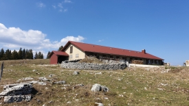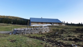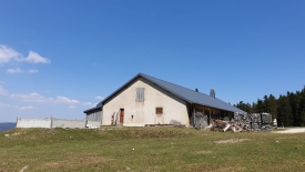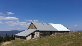 Près de La Duchatte, un jeune est en train de relever les clôtures. Nous nous approchons du chalet par le pâturage. Nous sommes en contre-bas. Arrivés à bonne hauteur, nous constatons qu’il y a une demi-douzaine de voitures garées tout autour. Des gens s’interpellent et nous pouvons constater que la distance sociale préconisée n’est pas vraiment respectée. Nous nous éloignons sur la pointe des pieds.