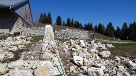 Sur la route qui mène à La Duchatte, le Mont Tendre me nargue. Je pointe du doigt son point géodésique et demandant : on a le temps d’y aller ? Stefano hoche la tête. À La Blondinette, nous étions au kilomètre 14 m’explique-t-il. Il faut en compter autant pour rentrer en ligne droite. Hum, OK ! Il me promet que nous irons bientôt.