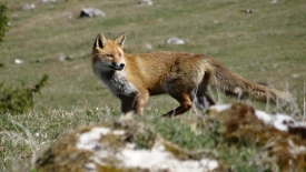 Nous marchons tranquillement à travers champ vers le prochain chalet lorsque Stefano me fait signe de stopper et chuchote : regarde, un renard.