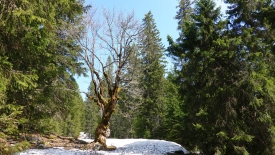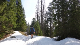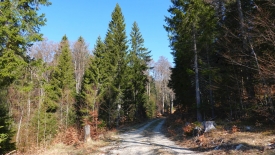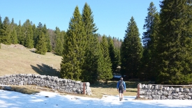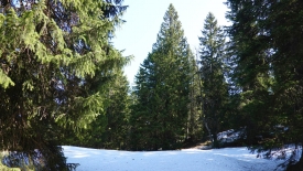 Comme des randonneurs occupent la route (encore bien enneigée d’ailleurs), nous coupons à travers forêt, par une route des anciens, pour arriver au chalet de la Foirausaz.