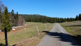 Nous repartons par la route enneigée qui mène au Mont Tendre.
