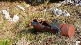 Si nous avons trouvé assez souvent de petits fragments de munitions ici et là, cet obus là est presque entier. Il mesure environ 50 centimètres de long.