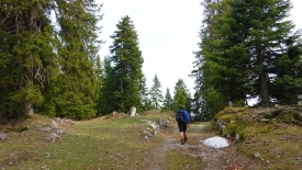 C’est (presque) sans une hésitation que nous rejoignons la piste forestière, empruntée moult fois dans l’autre sens, qui part du Pré de Mollens pour se terminer au milieu de nulle part. Un grand bravo à Stefano dont le sens de l’orientation me laisse toujours admirative.