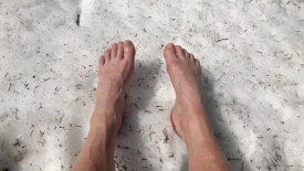 Stefano me promet le pique-nique au chalet de Pierre. Lorsque nous y arrivons, à 14h30, je suis affamée. Je trouve un billot de bois, enlève mes chaussures, plante mes pied dans la neige en savourant mon sandwich.