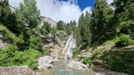 Un couple que nous croisons nous conseille d’aller voir la petite cascade qui se trouve à quelque mètres du petit pont en bois qui traverse le gave.