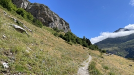 Le sentier continue et se poursuit par une petite montée où un peu de scrambling s’avère nécessaire, nous laissant presque penser que nous avons fait fausse route. Car, quelques dizaines de mètres avant, à une bifurcation de sentiers, nous avions choisi de prendre celui de gauche. En consultant la carte, après coup, l’option de droite aurait vraisemblablement été plus facile, les deux sentiers se rejoignant quelques mètres plus tard.