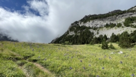 Sur le Plateau de Bellevue, nous pouvons admirer les montagnes alentour, alors qu’hier, nous avions été accueillis par un ciel bien bouché.