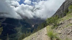 Lors de la préparation de cette randonnée, Stefano avait imaginé rentrer à Gavarnie en passant par la corniche des Espugues car à priori l’on jouit d’une superbe vue sur le Cirque de Gavarnie (la description de l’itinéraire est disponible plus bas), mais dans la mesure où la météo n’est pas coopérative, nous décidons de rentrer par le chemin des écoliers.