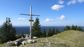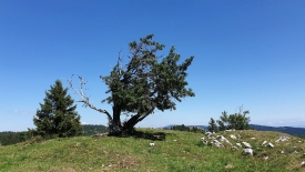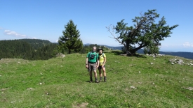 Nous trouvons un sentier qui s’arrête sans crier gare. Mais nous sommes dans la bonne direction et arrivons, quelques 600 mètres plus tard, au sommet d’un premier mamelon. Nous ne le savons pas , mais ce mamelon c’est bien le Mont Pelé, haut de 1’534 mètres. Pour nous, le Mont Pelé, c’est le prochain mamelon, celui où nous avons l’habitude de manger notre sandwich et de gaspiller quelques pixels pour un joli arbre. Et donc, persuadés que nous ne sommes pas encore arrivés à destination, nous poussons plus loin.