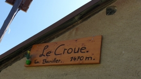 Au Chalet du Croue, le berger sort nous dire bonjour. C’est Monsieur Barillier en personne, comme l’indique la plaque apposée au mur.