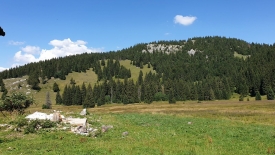Nous descendons vers Les 3 Suisses où des aboiements de chien et des clochettes d’ovins se font entendre. Aïe, ce n’est pas la bonne combinaison. Nous allons avoir droit à une rencontre avec les chiens gardiens de troupeau.