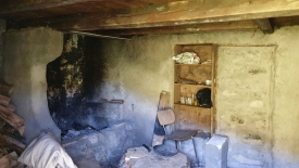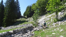Il part au dessus du corral de pierre sèche, derrière le chalet.