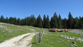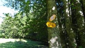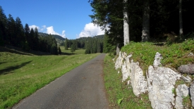 Après une belle descente dans un pâturage boisé, nous rejoignons la route qui part de l’Arzière.