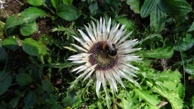 Juste après l’avoir passé, nous traversons un champ de chardons bleus.