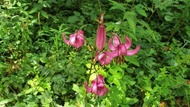 La route est bordée de lis martagon. Moi qui étais désespérée de n’en avoir trouvé qu’un pied en descendant de La Petite Chaux… Ouf, ils ne sont pas en voie d’extinction.