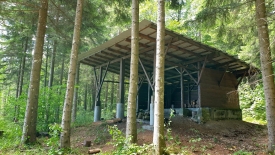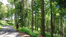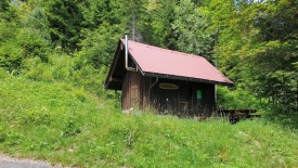 Chalet que nous évitons en longeant l’orée de la forêt jusqu’à retrouver la route.