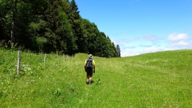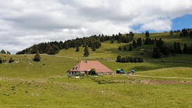 Nous sortons du bois pour arriver sur le pâturage du chalet du Mollendruz.