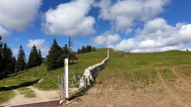 S’ensuit une belle montée qui nous amène sur les Hauts du Mollendruz. Nous laissons un souvenir à la clôture. Cette semaine, il faut que je retourne chez Landi afin de refournir notre stock.