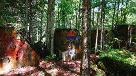 Nous suivons un sentier qui se termine à un réservoir puis partons à l’aventure jusqu’à arriver au chalet Le Risel.