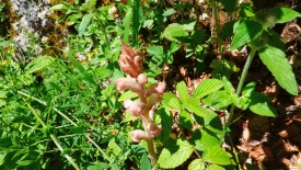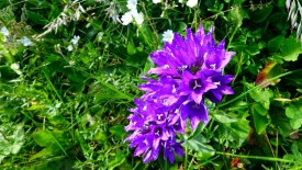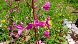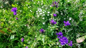 En nous approchant du chalet du Pré de l’Haut Dessus, nous entendons des voix. Une table est dressée dehors et une dizaine de convives discutent joyeusement. Je m’approche néanmoins pour demander des nouvelles de la vache noire qui devait mettre bas des jumeaux. Non, me répond-on. Finalement il n’y a eu qu’un veau et la vache est morte dans la journée. Douche froide. Un bout de jardin de 4 à 6 mètres carrés est recouvert de lis martagon.