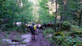 Nous échangeons quelques mots avec la bergère qui nous demande d’éviter le troupeau car un petit veau est né il y a deux jours.