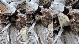 D’abord tout au fond du tronc… … il s’enhardit petit à petit… pour sortir presque complètement.