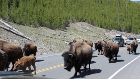 Entre-temps, nous avons dû négocier avec les bisons afin qu’ils nous libèrent la voie. Dans le sens opposé, la file de voitures atteint en tout cas 3 à 4 kilomètres…