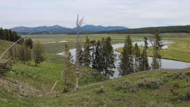 La vers le sud route passe par Hayden Valley. Hayden Valley est un spot renommé pour observer de la vie sauvage. Autrefois recouverte par le lac, la vallée n’a pas reçu assez de sédiment pour que les arbres y poussent lorsque celui-ci s’est retiré. C’est donc une immense prairie, que parcourt la Yellowstone River.