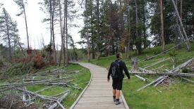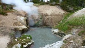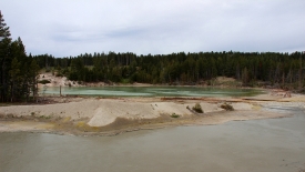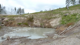 Nous nous arrêtons à une zone thermique active, la Mud Volcano Area.