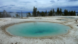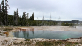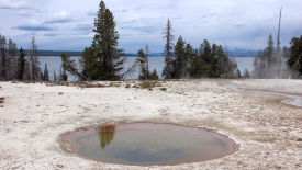 Dernière étape de notre découverte : West Thumb Geyser Basin, sur la rive sud du lac de Yellowstone. C’est un cratère dans le cratère.
