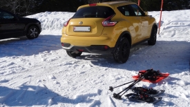 Le soleil vient de disparaître derrière les crêtes et la température chute brutalement. Les chaussures sont vite enlevées et déneigées. Hum, vive les sièges chauffants !