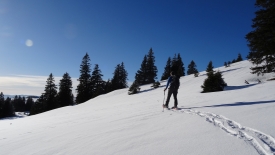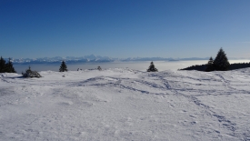 Mais tout à une fin. C’est là que nous partons dans la pente, en direction des Monts de Bière Devant.