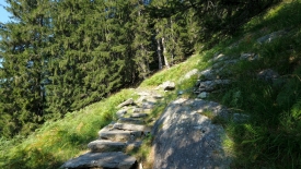 C’est que, par là, il y a quelques centaines d’années, montait le bétail pour aller paître dans les prés en altitude. Pour l’avoir maintes fois constaté dans le Jura, les sabots des vaches sont dévastateurs, surtout lorsque le terrain est mouillé. La seule manière de sauvegarder le sentier était de le consolider.