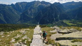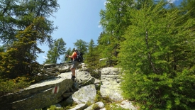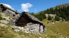 Aujourd’hui, nous montons vers le Pizzo Bombögn par des sentiers aménagés par les anciens afin de faire monter le bétail sur les alpages. Nous n’irons pas au somment mais contemplerons avec admiration le « mur du Bombögn », long de 300 mètres et haut de 2.20 mètres, construit sur une pente à 60% pour contenir les chèvres et les empêcher de venir manger de jeunes d’arbres fraîchement plantés.