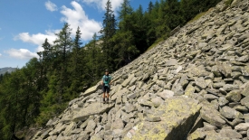 La traversée de pierrier est très récréative. Les pierres sont de bonne taille, bien calées entre elles et ne roulent pas. Certaines sont un peu bancales mais on devine leur instabilité d’un seul coup d’œil. C’est le genre de terrain que j’adore.