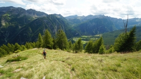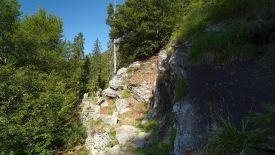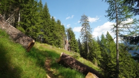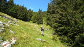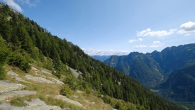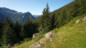 Après Pigliegn, nous avons un bon moment de répit. Le sentier suit le flanc de la montagne, plus ou moins horizontalement, sur un peu plus d’un kilomètre. Mes mollets soufflent.