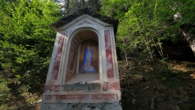 Plutôt que d’attendre bêtement sur le bord de la route, nous poursuivons notre chemin, par le sentier des chapelles qui longe de près ou de loin la route et la traverse à quelques reprises.